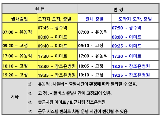| 셔틀버스 운영 시간 및 승하차 장소 변경 안내 | |